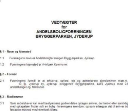 Vedtægter for AB Bryggerparken hentes ved klik på linket til højre.